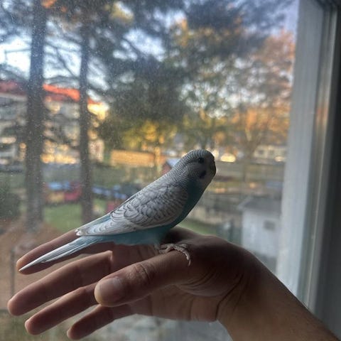 Här är en pigg och glad kille på 2 år som älskar livet! Han har bra aptit och är mycket social – han sitter gärna på axeln och äter direkt ur handen.