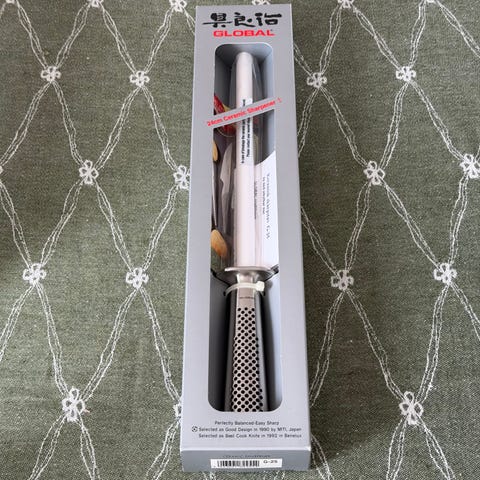 GLOBAL-PRO laxkniv GP-10. Tillverkad av Molybdenum/vanadium stål. Kniven är en laxslicer på 32 cm. Använd ett fåtal gånger