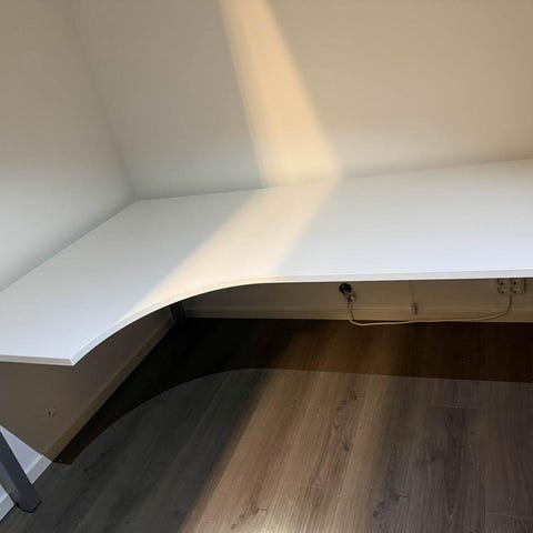 IKEA BEKANT hörnskrivbord – vitlaserad ekfanér. Bra skick.