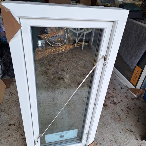 Fina fönster från Elitfönster med vit ram och metallbeslag. Perfekt för renovering eller nybyggnation. Saknar karm. Från ca 2008