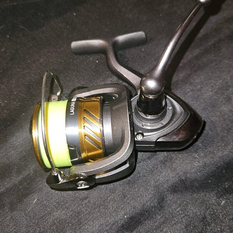 Daiwa Laguna XT haspelspö med rulle. Spöet är tvådelat och har en längd på 7 fot (702MLFB enligt fodralet). Handtaget har korkdetaljer. Till spöet hör en Daiwa Ninja LT 2500-P haspelrulle med påspolad lina. Levereras med originalfodral märkt Laguna XT. Lämpligt för lätt till medeltungt fiske med haspelrulle i sötvatten eller kustnära miljöer.