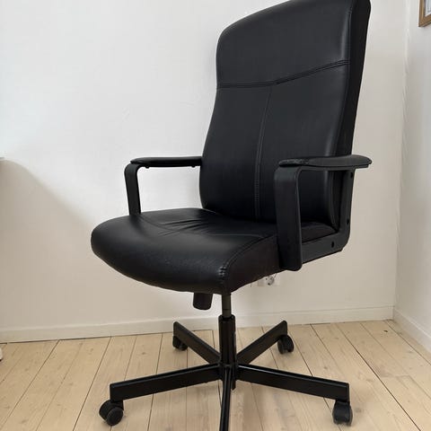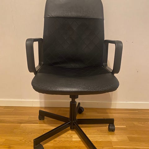 Säljer en bekväm och stabil kontorsstol i svart utförande. Stolen har mjuk sits, hög rygg och armstöd som ger bra stöd vid längre sittpass, perfekt för hemmakontor eller arbetsplats.