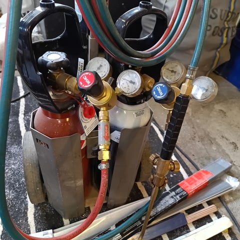 Syrgastub full, Acetylentub nästintill full.