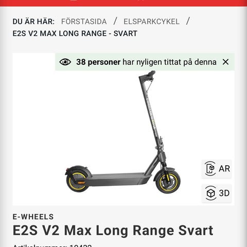 E-Wheels E2S V2 elsparkcykel 20 km/h, inköpt september 2023 vilket innebär garanti till september 2026.