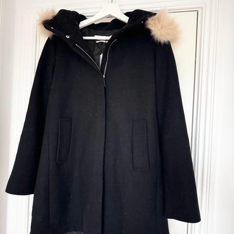 Dunkappa i svart färg, storlek S, avtagbar fuskpläs krage, längd till låren,från mango.