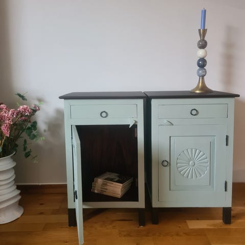 Säljer ett otroligt fint skåp i en mjuk grön nyans som skiftar vackert beroende på ljuset