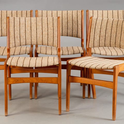 Gott skick. En stol med märkning och en utan. En stol med liten nagg på sätet (se bild).