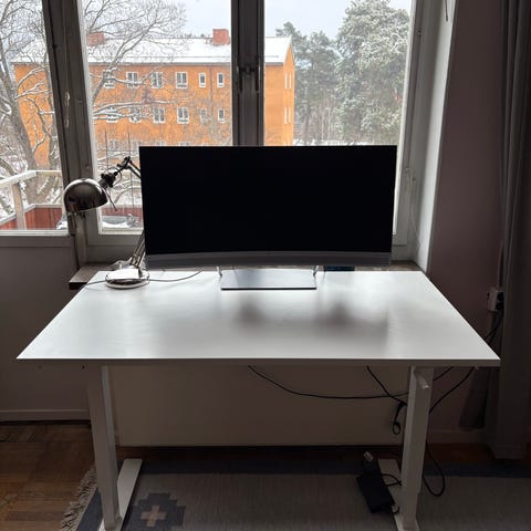Monitorarmen sparar mycket plats på skrivbordet och gör det lätt att justera höjd och vinkel.