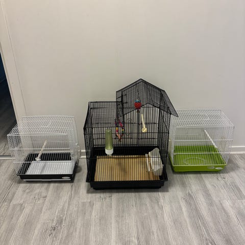 Smådjurshage för gnagare med galleröverdel i metall och plastbotten i ljus färg. Burens överdel går att öppna uppåt för enkel åtkomst vid rengöring och skötsel. Passar exempelvis kanin, marsvin eller andra mindre gnagare beroende på storlek. L 118 B 60 H 50 inkl 2 vattenautomater, 2 hus, matskål 500:-