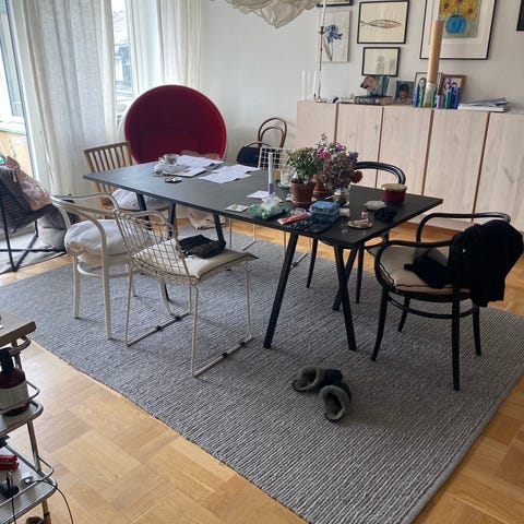 Piedestalmatbord från Ikea. Klassisk design med ett ben som gör att man inte behöver slå tårna i något under bordet :)