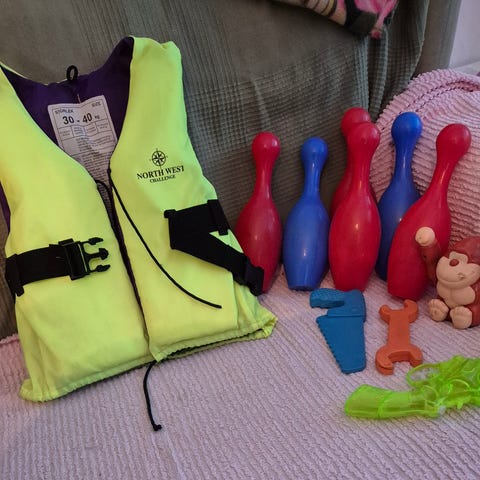 Poolset för Barbiedockor, uppblåsbar plast innehåller : En pool. Fåtölj, madrass, simring x 2st. En badboll och en solsäng