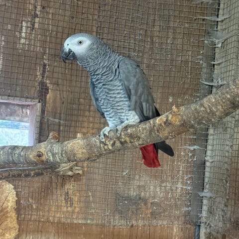 Grå jako papegoja är till salu, en hane och en hona. Inte tama.