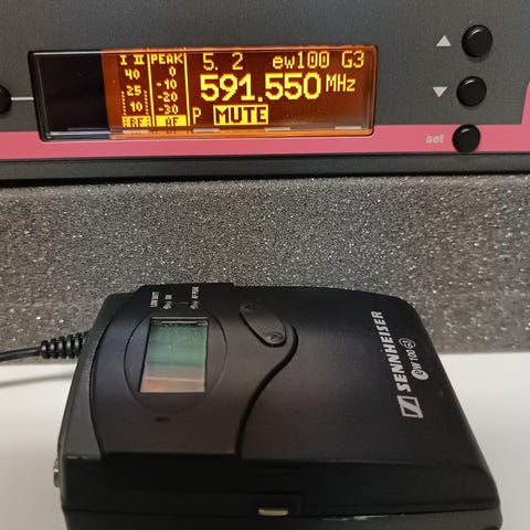 Sennheiser Freeport trådlöst mikrofonsystem i svart utförande. Systemet består av en mottagare, en bärbar sändare, nätadapter, anslutningskablar samt headsetmikrofon och instrumentkabel. Jobbar på licensfri frekvens. Mottagaren har fyra frekvenser att ta emot på. Sändaren har egentligen motsvarande fyra men verkan bara fungera på en av dem.