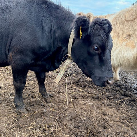 Stambokförda dextertjuren Olof född -20. Går ihop med kor och kalvar. Van vid elstängsel och att hanteras ihop med övriga flocken.