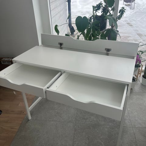 Säljer ett IKEA ALEX skrivbord i mörkgrått, bra förvaring i lådor.