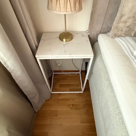 Sidobordet fungerar också bra som en piedestal med en blomma eller som ett sängbord