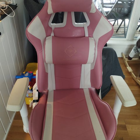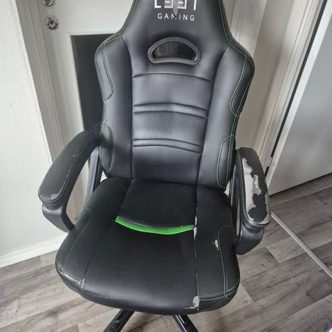 Stolen är använd men i bra skick och fungerar som den ska. Stabil och bekväm, passar perfekt för gaming, plugg eller arbete vid datorn.