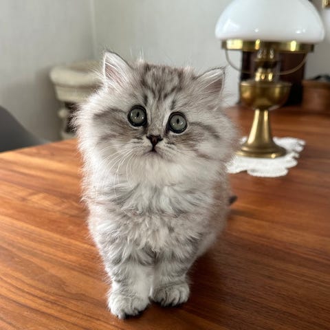 Hon är en försynt, intelligent och inkännande flicka som aldrig vält en blomkruka, bitit eller glömt fälla in klorna. Hon är kommunikativ och både berättar och visar vad hon vill.