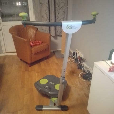 Träningsmaskin för magövningar i röd färg. Utrustad med rund plattform och två fotstöd för situps och bålträning. Stabil metallram med handtag framtill för stöd under träningen. Lämplig för hemmaträning av mage och bål.