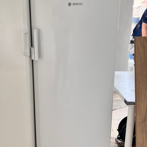 Bosch KSR34N11 kylskåp i vitt utförande. Fristående modell med en dörr och vertikalt handtag. Invändigt finns flera justerbara hyllplan samt dörrhyllor för förvaring av flaskor och mindre förpackningar. Kylskåpet drivs med 230–240 V och är avsett för normal hushållsanvändning. Passar som huvudkyl eller som extra kylutrymme i till exempel kök, grovkök eller förråd.
