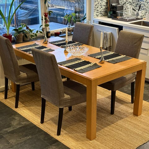Matbord 119x73 i massiv ek. Bra skick.