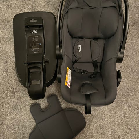 Axkid Modukid babyskydd för barn 0–13 kg. Babyskyddet är bakåtvänt och monteras på basen som syns på bilden. Färg svart. Passar för användning i bil enligt tillverkarens anvisningar. Sätet har bärhandtag och intern sele för att hålla barnet på plats.