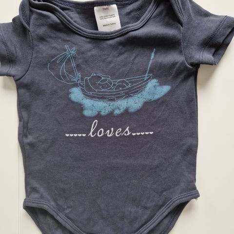 Märkningen säger storlek 74 men jag tyckte den var lite mindre i storleken och rekommenderar därför att testa redan vid storlek 68.
