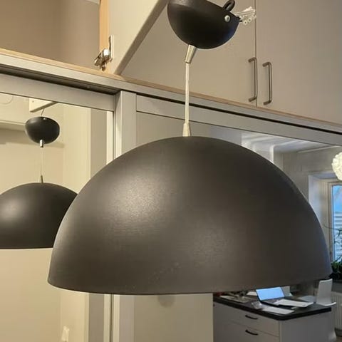 Två likadana taklampor från Nordlux, svarta läderband på bild men har även naturfärgat läder att byta till om man så önskar. Nypris 1900kr per styck. Säljes för 500kr styck.