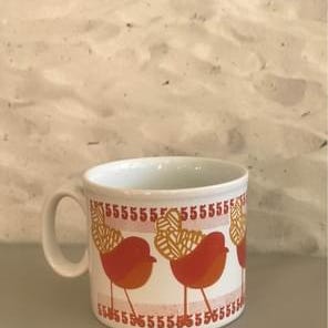 Allied mugg i porslin med motiv av traditionella irländska dansare och texter på engelska runt om koppen. Flerfärgat tryck med dansare i olika klänningar och dekorativ bård. På insidan finns en liten dansfigur nära kanten. Märkt "Allied – Designed in Ireland" på undersidan och angiven som diskmaskins- och mikrovågsugnssäker.
