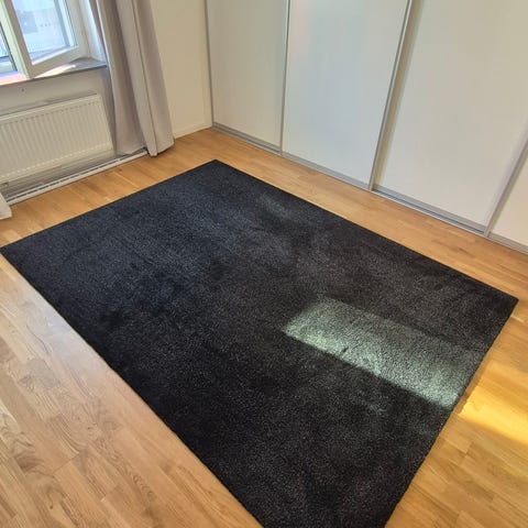 IKEA matta i mörkgrå färg. Rektangulär modell som passar exempelvis vardagsrum, sovrum eller lekrum. Lämplig att använda på trägolv eller andra hårda golvytor för att ge en mjukare yta att gå eller sitta på.