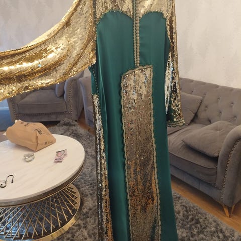 & Other Stories klänning i storlek M för dam. Klänningen är grön och tillverkad i organza. Framtill finns dekorativ broderad detalj med blommönster. Lång ärm och rak passform som passar till både vardag och mer uppklädda tillfällen.