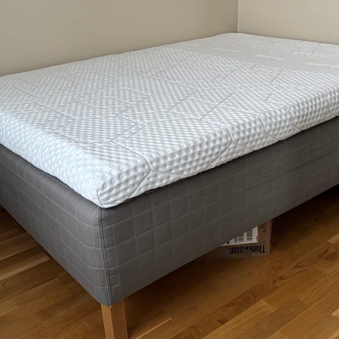 Har en Ikea säng (120*200) som jag inte längre nyttjar. Själva komforten är det absolut inga fel på, på så vis är det fortfarande en skön och behaglig säng. Genom åren har den fått lite fläckar här och där.