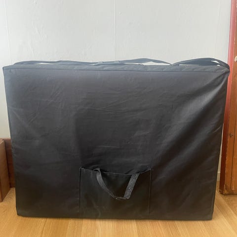 Hopfällbar och kommer med en väska så den är lätt att ställa undan när den inte används.