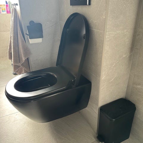 Säljer vår toalettstol i svart från Bath Deluxe. Allt fungerar som det ska, men vi ska göra om på toaletten och sätta dit en vit toalettstol istället.