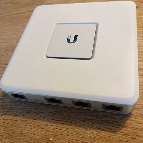 Ubiquiti UniFi Dream Machine router i vit färg.