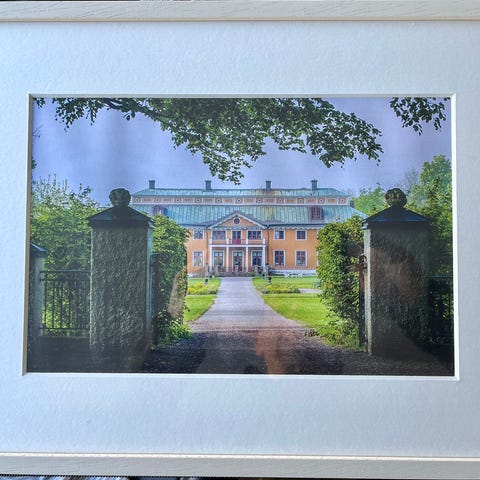 Med svarta ramen och glas