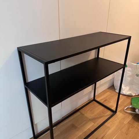 Fin vit hylla i trä som avlastningsbord, inredning etc
