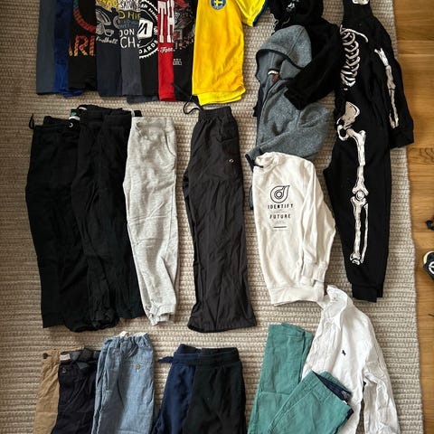 2 långärmade pyjamasar 2 långbyxor 1 halvlånga byxor 9 T-shirts 4 hoodies