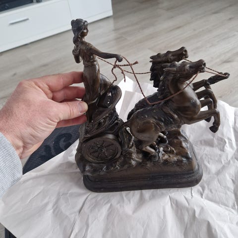 Skulptur sittande figur grå silverfärgad