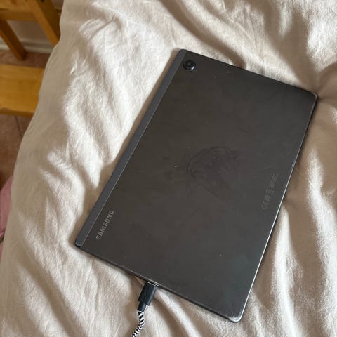 Äldre Samsung surfplatta med laddare