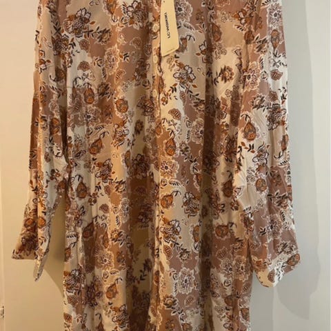 Fin leopardmönstrad klänning med volanger vid halsen och nederdelen som ger ett fint fall. Làng ärm och bekväm, luftig passform. Passar perfekt till bäde vardag och fest.