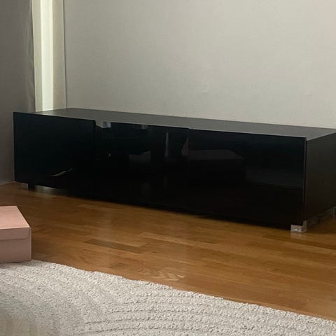 Stabil och stilren TV-bänk från IKEA i svart färg. Äldre modell men i bra skick och fullt funktionell. Passar perfekt för större TV och med gott om plats för tillbehör.
