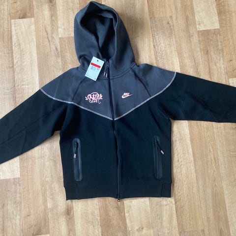 Helt oanvänd. Nike jacka för herr i storlek M. Svart modell i polyester med huva och hel dragkedja framtill. Jackan har tryck och logotyper kopplade till Brasiliens fotbollslandslag på bröstet samt sponsortryck på ärmarna. Tillverkad i lätt polyestermaterial som passar som ytterjacka vid vardagsbruk och sportaktiviteter.
