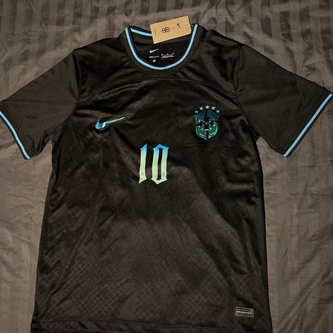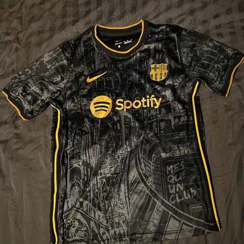 Helt ny med tagg. Nike FC Barcelona fotbollströja för herr i storlek M. Tröjan är svart med röda och blå detaljer i sidorna. Sponsorlogga på bröstet samt klubbmärke och Nike-logga framtill. Rygg med namn och nummer 14. Kortärmad matchtröja i lätt och funktionellt material anpassad för fotbollsträning och matchspel.