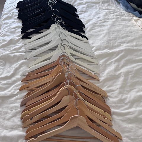 En mycket stor och varierad uppsättning klädhängare.