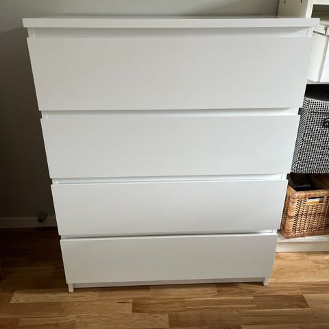 Gått sönder en ”list” ovanför ena lådan. Vet ej om det går att laga, skickar med den trasiga delen.