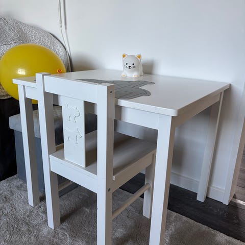 Blå barnstol (Kritter, IKEA), den har några små märken men är annars i bra skick.