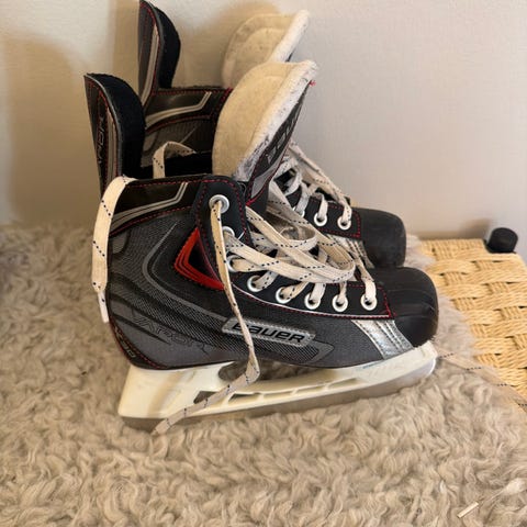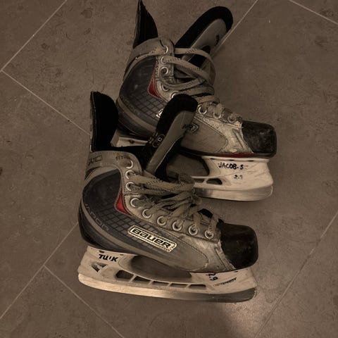Bauer Supreme 990 ishockeyskridskor i mycket bra skick för barn i storlek 35-36. Modellen är svart med vita detaljer och klassisk snörning. Skridskorna har stabilt skaft och hård yttersko som ger stöd för fotleden vid ishockeyspel eller allmän åkning. Bladen är monterade på vit hållare och är anpassade för ishockey. Skostorlek 35-36.