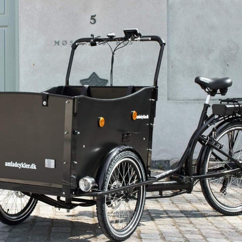Lastcykel trehjuling för unisex med ramstorlek M och 26" hjul. Cykeln har en stor lastlåda framtill med två framhjul och ett bakhjul. Lådan är i hårt material med höga kanter för att hålla last på plats. Sadel och styre är utformade för upprätt sittställning. Passar för transport av exempelvis bagage eller annan last i vardagsmiljö. Färg svart.