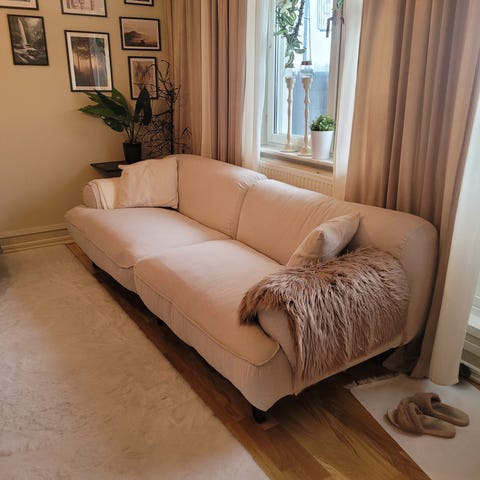 Charmig men sliten soffa (katter som klöst på armstöden exempelvis). Måste hämtas senast torsdag, sen blir det tippen.